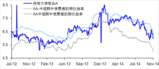 6招商大宗商品A到期收益率与同期限信用债收益率的比较(%)
