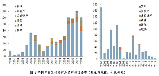 股票资产依然是产品主流,北美地区依然是主要投向。新增产品中,以股票为底层资产的产品数量与规模分别占比78.4%与96.7%,且股票类Smart Beta ETF是所有资产类型中唯一规模有所增长的。与此同时,北美地区依然是产品的主要投向,新增规模占比超过45%,总规模超过6500亿美元。