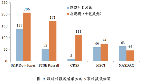 从标的指数来看,Smart Beta ETF跟踪的指数主要来自S&P Dow Jones,FTSE与MSCI等重要国际指数发行商。CRSP虽然仅有8只跟踪产品,全部为Vanguard发行的价值与成长产品,总规模巨大。