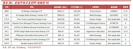 另类ETF包括如对冲型、通胀型、多空型、期货管理、合并套利、绝对回报等,产品可选面广,有做多,做空或加杠杆做空等。另外,近些年资产配置类ETF也慢慢发展起来,主要的策略类型包括季节轮动策略、因子轮动策略、多资产配置策略等,主要解决投资者的配置和交易需求。国内目前有指数公司编制了资产配置指数(譬如中证编制的多资产风险平价指数),但尚未有产品正式发行。