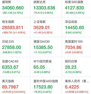 美股三大股指集体收跌,热门中概股多数上涨,欧股收盘涨跌不一。