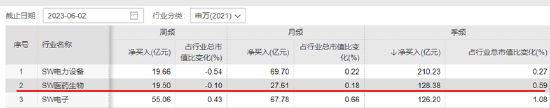 北向资金方面,Wind数据显示,截至6月2日收盘,医药生物行业(申万)近一周、近一月、近一季净流入额分别为19.5亿元、27.61亿元和128.38亿元,在31个申万一级行业中分别排名第4、第5及第2位。其中季频维度,医药生物为全市场申万行业中唯三净流入额超百亿元的行业之一。