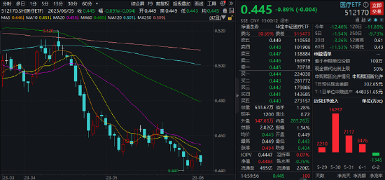 ETF方面,医疗ETF(512170)全天低位震荡,场内价格收盘跌0.89%止步两连阳,全天成交2.82亿元。
