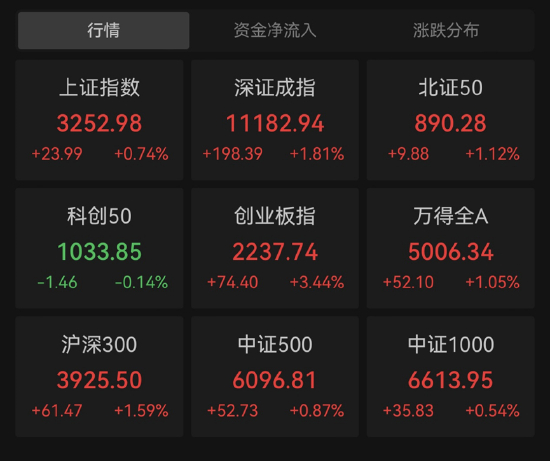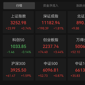 今日大盘全天高开高走,三大指数集体收涨,截至收盘,沪指收涨0.74%,深成指涨1.81%,创业板指大涨3.44%。沪深两市成交额10724亿元,日成交额环比放量718亿元,为连续第2日突破万亿;北向资金全天净买入92.01亿元,结束此前连续4日净卖出。