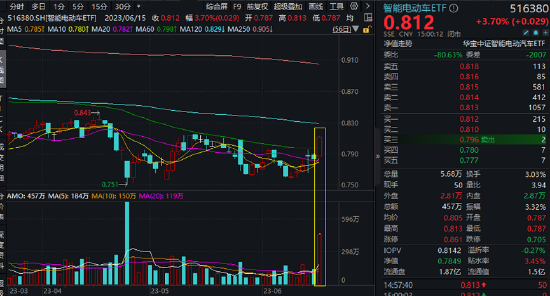 ETF方面,反映产业链整体行情表现的智能电动车ETF(516380)场内价格放量涨3.7%站上60日线,创下今年2月以来最高单日涨幅。