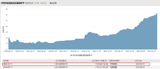 截至昨日(6月14日),港股互联网ETF(513770)最新份额达14.56亿份,最新规模11.56亿元,双创上市以来新高,较年初份额、规模实现翻倍式增长。