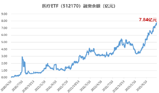 与此同时,杠杆资金也继续加码!4日融资买入医疗ETF(512170)1.68亿元,助推其融资余额升至7.84亿元新高,较年初大增逾九成。