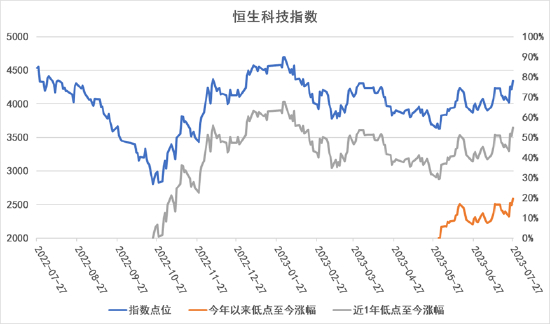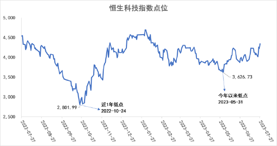 今年以来,恒生科技指数的低点出现在2023年5月31日,指数点位3626.73。