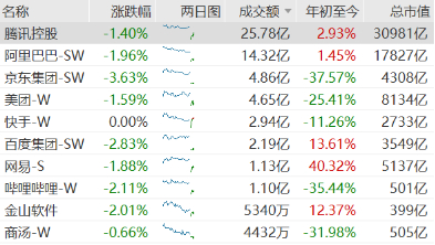 图表:恒生互联网科技业指数成份股单日表现