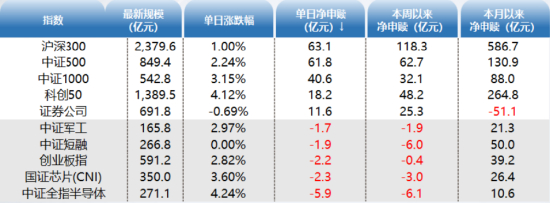 1)宽基指数方面,大涨之余吸金力不减: