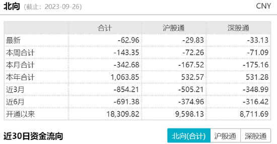 截至收盘,上证指数跌0.43%报3102.27点,深证成指跌0.6%,创业板指跌0.77%,科创50涨0.17%,北证50跌0.57%,万得全A、万得双创小幅下跌。A股全天成交6665.1亿元,连续两日环比下滑;北向资金净卖出近63亿元。
