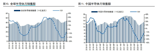 根据SIA数据,全球半导体销售额同比降幅连续4个月收窄,且连续6个月环比增长。其中中国地区的销售额表现更好,已经连续6个月同比降幅收窄且环比增长。从月度数据来看,全球和中国8月销售额均已恢复至去年年底的水平,景气周期触底回升趋势比较明确。此外,随着消费电子旺季逐渐来临,备货需求增加,芯片板块景气度有望进一步走强。