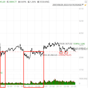 10月19日,在十年期美债收益率创新高、北向外资净流出百亿、贵州茅台现业绩杀等多方负面连锁反馈下,上证指数开盘直接跳空低开,跌破前低,即8月25日创下的“政策底”3053点,全天缩量走低,最低逼近3004点,熟悉的“3000点保卫战”再一次打响!