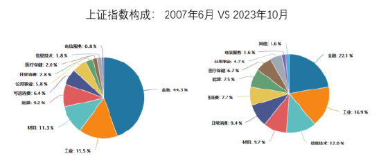 市场容量变大了,A股全市场上市公司从1000多家,到如今的5000余家。其中,上证指数的成份股也从900家,增加到2000余家。行业占比也发生了变化,金融板块占比从45%下降到22%,信息技术从不到2%上升到了12%。总结起来一句话:传统行业权重降低,科技含量在提升,成长属性增强,弹性也更大了。