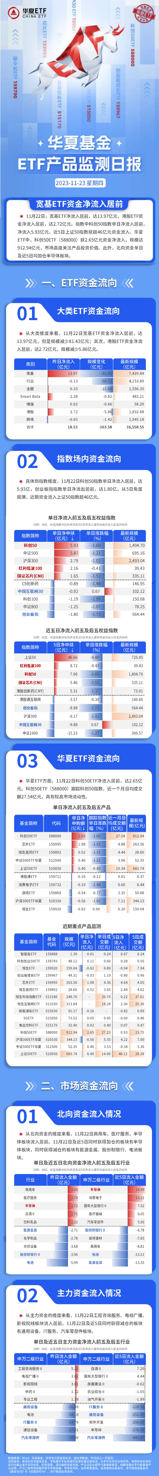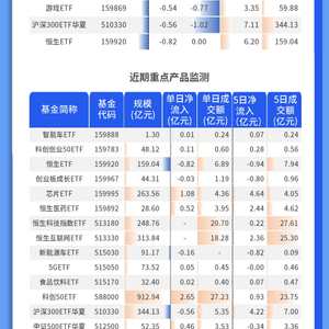 11月22日,权益ETF整体净流入18.53亿元,细分品类中,宽基ETF净流入居前,达13.97亿元,港股ETF资金净流入居前,达2.72亿元。指数层面,11月22日科创50指数净流入居前,净流入5.93亿元。近5日上证50指数获超46亿元资金流入。华夏ETF中,科创50ETF(588000)净流入2.65亿元,规模达912.94亿元。科创100ETF华夏(588800)昨日净流入3.51亿元,成交额9.7亿元,流动性持续保持高位,换手率高达24%,蝉联同类第一。此外,北向资金单日及近五日均加仓半导体板块。