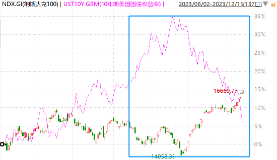 拉长周期看,纳斯达克100指数年内持续走高,上半年创下美股史上最佳上半年表现,11月该指数录得大约11%的涨幅,创下了自2022年7月以来的最高单月涨幅。