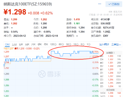 受此影响,“全球科技龙头风向标”纳斯达克100ETF(159659)今日跳空高开,午后涨幅进一步走阔,截至收盘涨0.62%,报收1.298元。