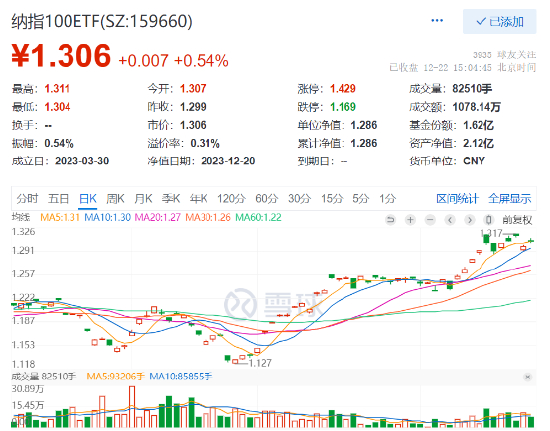 美股仅调整1日后反弹,三大指数齐收涨!纳指100ETF(159660)涨0.54%,最近6日吸金合计达2733万元!