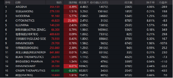 纳指生物科技指数其他成份股方面,Immunovant涨超8%,莫德纳涨超5%,Argenx涨超4%,生物基因、因美纳(Illumina)涨超2%,安进涨超1%,阿斯利康、福泰制药吉利德科学再生元制药等纷纷收涨。