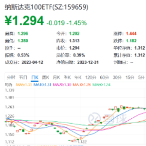 受此影响,纳斯达克100ETF(159659)今日低开,截至发稿,盘中实时下跌1.45%,溢价率0.39%。