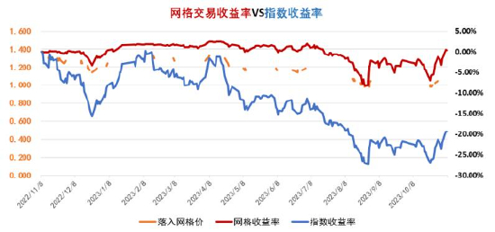 当目标品种的价格每跌一个区间时,就买入一份;当价格每上涨一个区间时,就卖出一份……从而赚取买和卖之间的份额价差。举例来说,急跌0.5%买入,待反弹0.5%再卖出,忽略交易费率,就获得了1%的价差,在震荡市,相比持有不动,能捕获一定的超额收益。