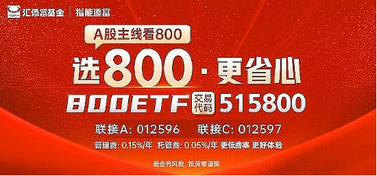 公开资料显示,800ETF(515800)是全市场规模领先的复制跟踪中证800指数的ETF,且有配套联接基金(A类:012596,C类:012597)方便场外申购。800ETF(515800)跟踪复制中证800指数,行业分布均衡,兼具成长和价值属性,表现稳健,能有效跟踪主线行情,成为了机构投资者公认的黄金“业绩比较基准”。