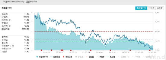 从估值角度看,800ETF(515800)标的指数(中证800指数)当前PE-TTM仅为11.74倍,低于过去3年99%以上的时间区间,绝对估值和相对估值均位于历史较低的水平,具备充分的修复空间。(数据来源:Wind,截至2024.01.10)