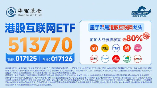 看好港股互联网板块后市表现的投资者可以关注港股互联网ETF(513770)。资料显示,港股互联网ETF(513770)跟踪中证港股通互联网指数(931637),权重股汇聚腾讯控股、美团、小米集团、快手等不同互联网细分赛道龙头公司,其中持仓腾讯控股、美团、小米集团、快手、京东健康权重超60%,前十大成份股权重近80%。