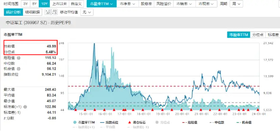 从投资性价比角度,当前阶段国防军工板块配置价值尤为突出。iFinD数据显示,截至1月10日,国防军工ETF(512810)跟踪的中证军工指数PE估值49.99倍,处于近10年5.48%分位点,即低于近10年逾94%的时间区间,中长期配置性价比较高,后续修复空间也较大。