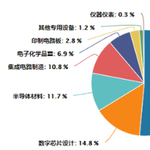 其中,半导体材料包括硅片、电子特气、CMP抛光液和抛光垫、光刻胶等;半导体设备包括光刻机、刻蚀机、薄膜沉积设备、清洗设备以及封测设备等。