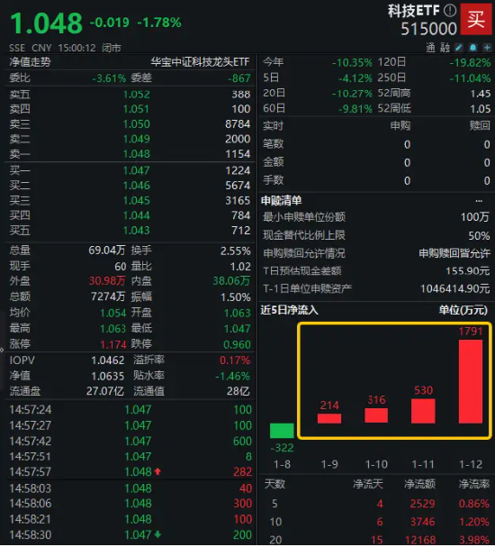 开年以来跌逾10%!资金逆行看多,连续押注科技赛道,科技ETF(515000)单日再揽金近1800万元