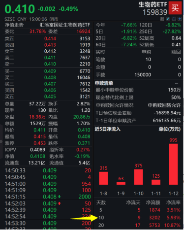 生物药板块连续回调之下,资金用脚投票。截至1月12日,生物药ETF(159839)连续9日获资金净流入,近20个交易日获资金增仓超5700万元!