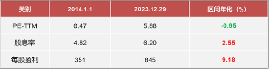 拆分中证红利指数过去十年收益发现,其估值维度贡献为负,区间收益全部是来自于股息+盈利增长,特别是盈利增长为主要驱动力,没有一厘米上涨来自于估值扩张。