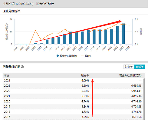 结合政策和经济发展阶段看,首先各种政策持续鼓励分红。近期证监会发布并施行《上市公司现金分红》以及《关于修改〈上市公司章程指引〉的决定》,推动上市公司不断增强分红意识,有助于进一步强化红利指数高股息特征,提升指数投资容量及流动性。Wind数据显示,中证红利指数最新股息率6.2%,处于历史高位水平,分红中枢持续抬升。