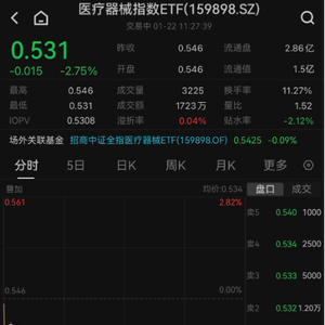 ETF方面,场内热门的医疗器械指数ETF(159898)开盘以来维持水下震荡,截至发文跌幅2.75%,成交额超1700万元,从分时图上看,下行区间持续溢价交易,或有资金逢低逆向布局。