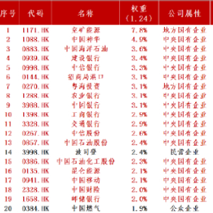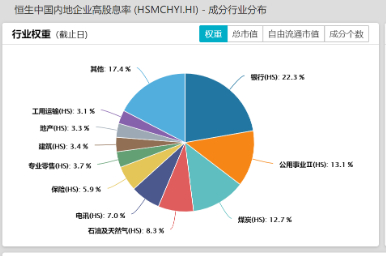 从成份股分布行业来看,指数聚焦银行(22.3%)、公用事业(13.1%)、煤炭(12.7%)、石油及天然气(8.3%)等恒生二级行业!