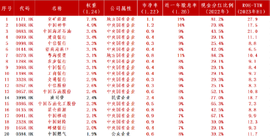 根据以上机构提供的研究方向,我们基于市净率、股息率、现金分红比例、ROE-TTM等多个指标,对恒生红利ETF(159726)标的指数—恒生中国内地企业高股息率指数的成份股进行了分析,其中不少公司在分红、股息率等指标上有着不俗的表现,此外部分公司当前处于历史较为低估区间,当下或迎来重估机遇。