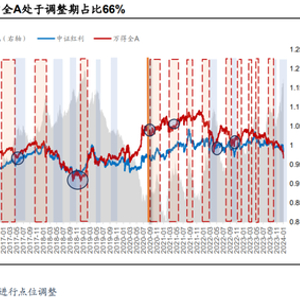短周期,红利资产仍需要择时。从经验规律看,过往高股息策略的确并不是一个长效策略。在2011年以来的十余年内,中证红利指数共有32个时间段跑赢万得全A,其中有21个时段为万得全A调整,而红利指数或跌幅更小,或逆势上涨,占比66%。并且,若不考虑红利再投资,在9次“市场底”出现后,中证红利的相对收益都会出现明显走弱。