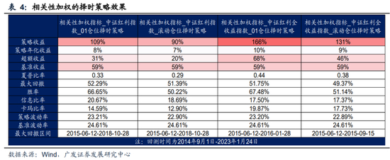 进一步,考虑到六维度择时指标对红利资产的信号本身就有强弱之分,我们进行了加权探索。一个思路是用择时指标与中证红利的相关系数进行加权,相关性强的指标释放的择时信号理应被赋予更高的值。为了避免“未来数据”问题,我们将每个择时指标与中证红利指数滚动36个月的相关系数作为权重进行信号加权。