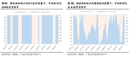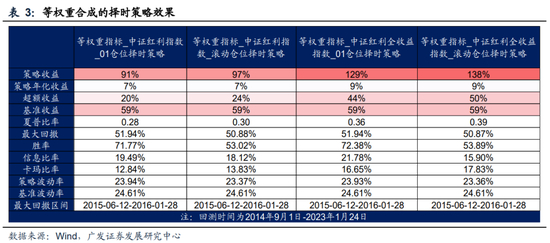 最终合成的择时信号相较等权重更符合当前特征,即整体择时强度自2019年以来明显放大。在该择时信号下,整体上持有中证红利指数的时段更多。