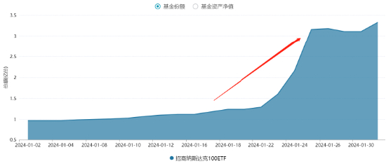 今年以来,纳斯达克100ETF(159659)获得资金持续踊跃布局。Wind数据显示,自2024年初以来,该ETF份额累计增长2.46亿份,区间份额增幅约252%,在所有跟踪纳斯达克100指数的ETF中增幅居前。纳斯达克100ETF(159659)最新份额3.33亿份,最新规模4.62亿元,双双刷新上市以来新高。