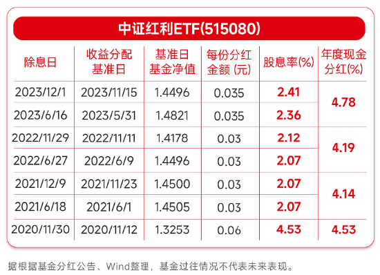 3)中证红利ETF分红较为稳定、持续
