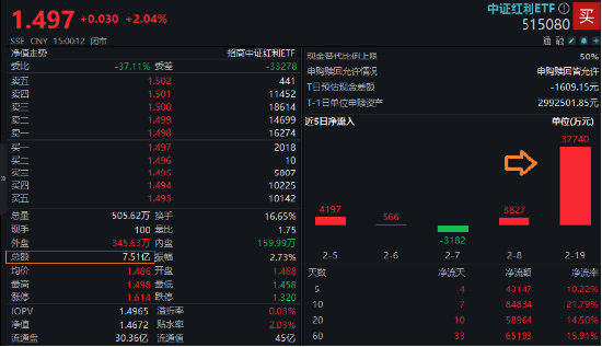 二级市场上,昨日高股息普涨行情下,中证红利ETF(515080)盘中出现异常放量,单日成交额高达7.51亿元。上交所数据显示,昨日该ETF获3.78亿元资金净申购买入。