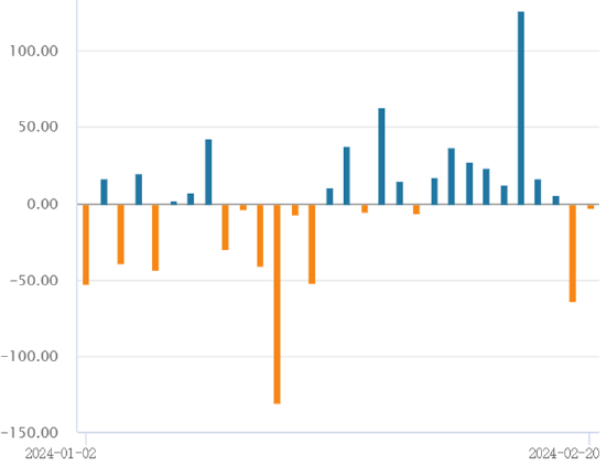 2月LPR非对称降息,A股低开高走,沪指豪取五连阳,市场逾3500股上涨,超150股涨停。上证指数收涨0.42%报2922.73点,深证成指涨0.04%报8905.96点,创业板指跌0.01%报1746.18点,科创50指数跌1.13%报754.7点,北证50指数涨2.03%,万得全A涨0.44%,万得双创涨0.4%。市场成交额不足8000亿元,量能有所萎缩;北向资金实际净卖出1.23亿元。