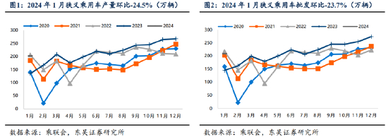 从生产和库存来看,去年12月底乘用车整体库存达到381万辆,处于高位,导致年初很多车企稳生产降库存的力度较大。今年1月,狭义乘用车产量实现 202.1 万辆(同比+50.0%,环比-24.5%),批发销量实现 208.9 万辆(同比+44.4%,环比-23.7%);其中新能源汽车产量 73.4 万辆(同比+85.1%,环比-33.3%),批发销量实现 68.2 万辆(同比+76.2%,环比-38.8%)。1月新能源汽车批发渗透率达到32.6%(环比-8.09pct)。产销量同比大增的重要原因之一是春节错位导致的节前消费时间差异。