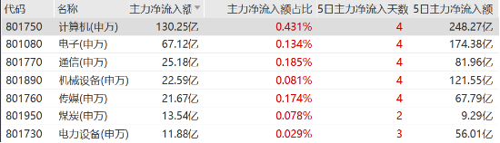 从市场资流向来看,根据Wind数据,今日计算机板块获得主力净流入超130亿元,近五个交易日获得主力资金净流入超248亿元,均位居申万一级行业第一。