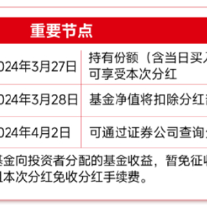 权益登记日:3月27日,指的是持有份额(含当日买入及申购份额)可分享本次分红。也就是今日收盘前持有的份额可参与本次分红。