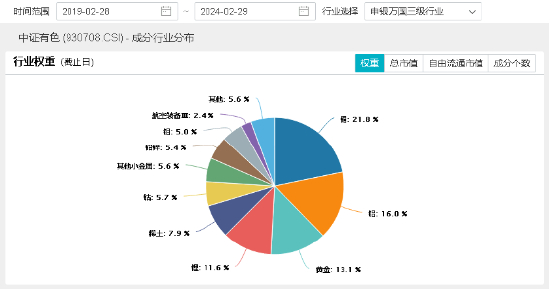 公开资料显示,有色龙头ETF(159876)紧密跟踪中证有色金属指数(930708.CSI),截至2月29日,按照申万三级行业来看,铜、铝、黄金分别占比21.8%、16%、13.1%,合计占比约50%。指数涵盖了能源金属、小金属、工业金属、贵金属等60只龙头个股,碳中和大背景下,新能源产业中下游长期处于高速稳定增长及扩张阶段,产业链上游行业基本面景气度高,有色金属价格有望继续走高,持续确定性强。