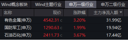 国防军工板块继续活跃,继昨日领涨两市后,今日获主力资金大举抢筹,全天净流入近20亿元,在31个申万一级行业中高居第二!