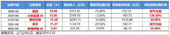 图:港股互联网ETF(513770)标的指数前五大权重股年报业绩